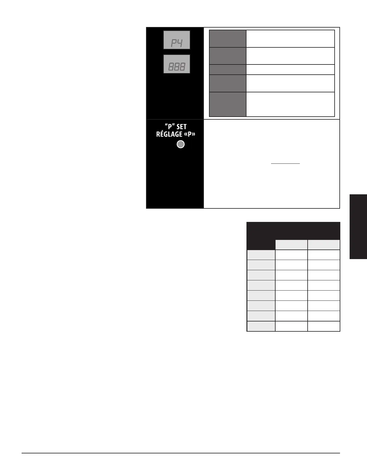 d'alimentation en fonction du réglage "P" sélectionné sur la carte de commande
