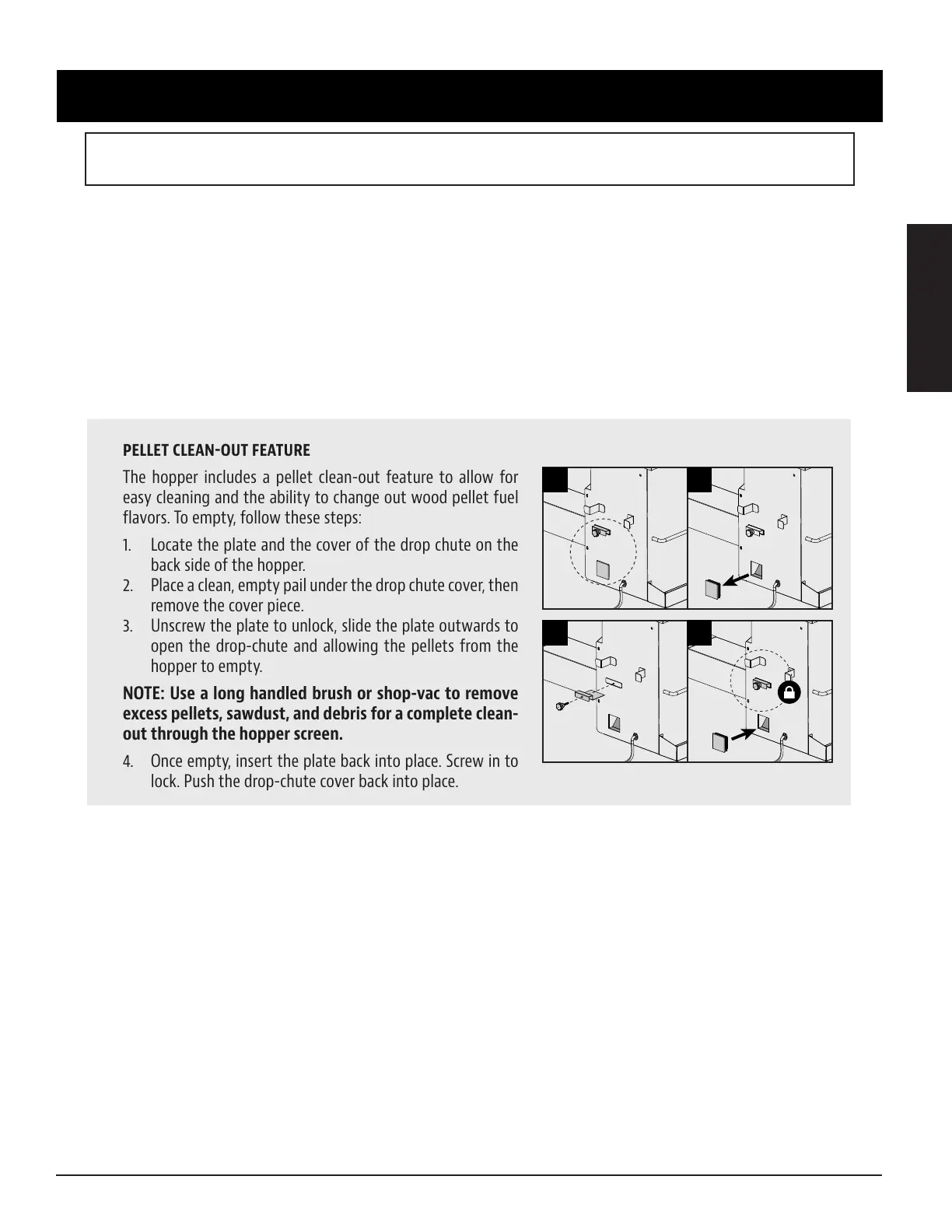 • Running all pellets out of your auger system is recommended if your grill will be unused for an extended period