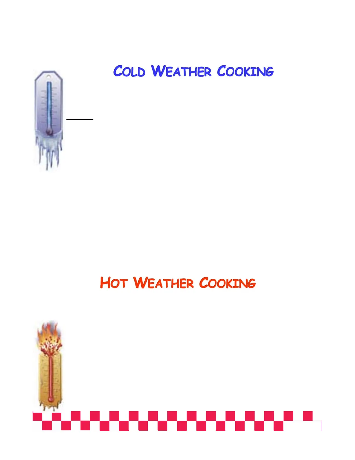 Following are a few tips on hot weather cooking. As it gets hotter outside, not only will the cooking times of your food