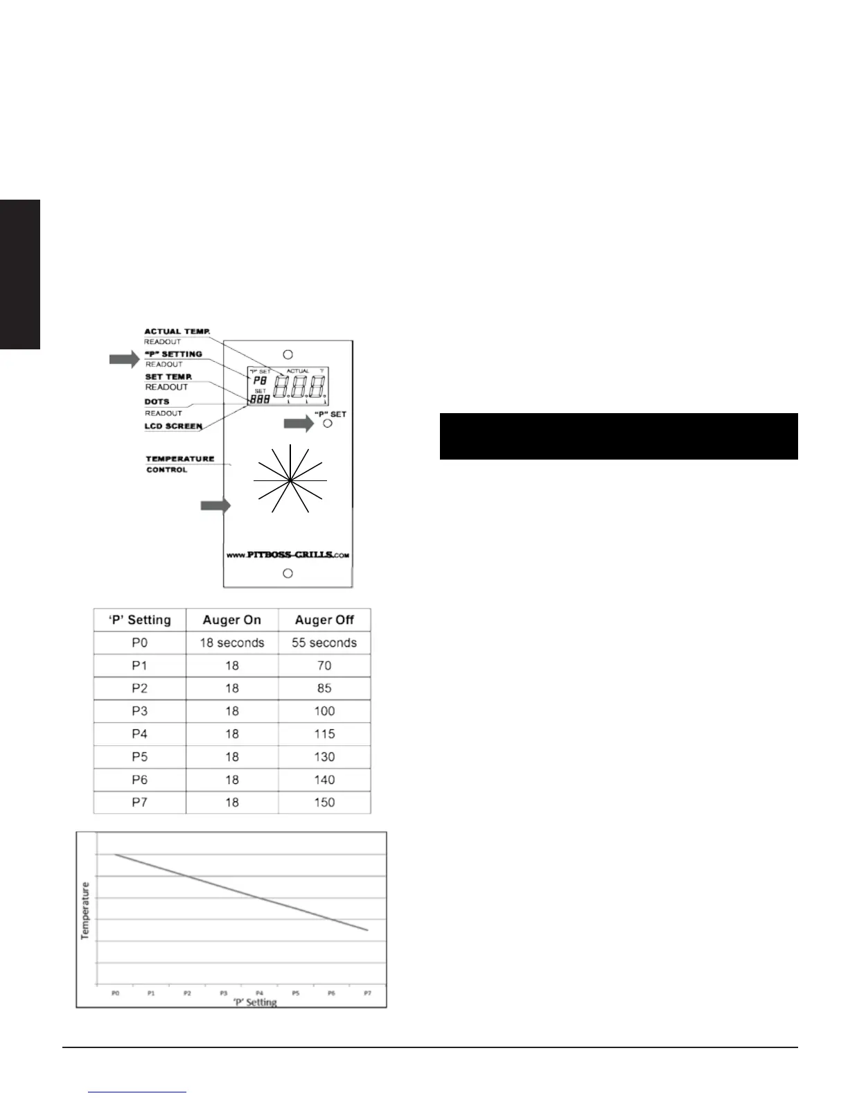 DECREASING the “P” setting INCREASES the Fuel Feed Rate, (heat