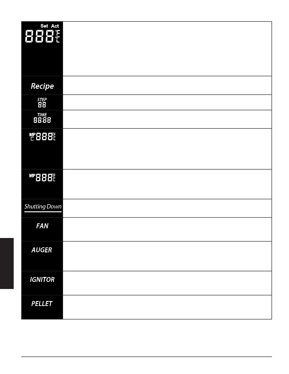 el fuego de la cámara de ignición se ha apagado o que es posible que la tolva esté vacía. Consulte la