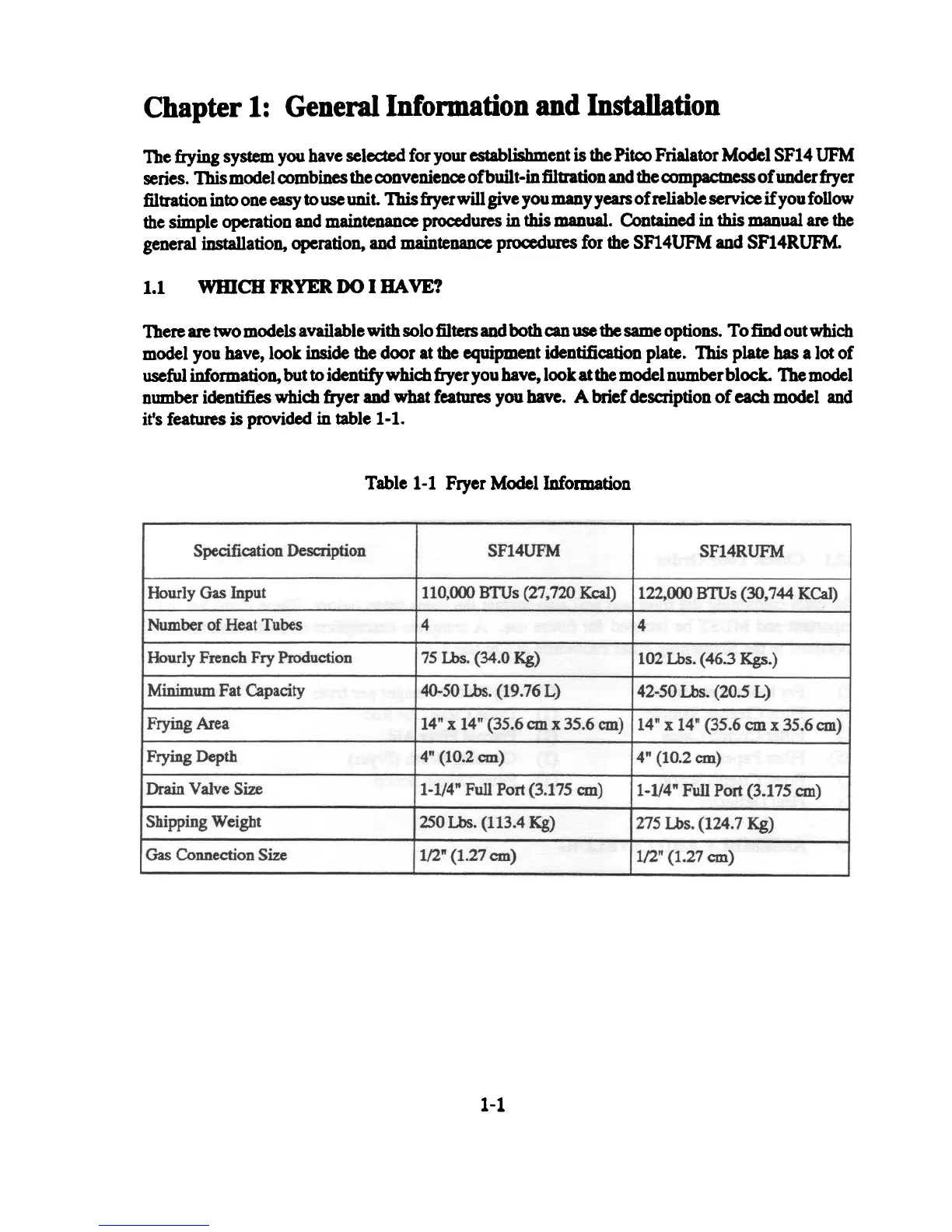 The frying system you have selected for your establishment is the Pita> Frialator Model SF14 UFM
