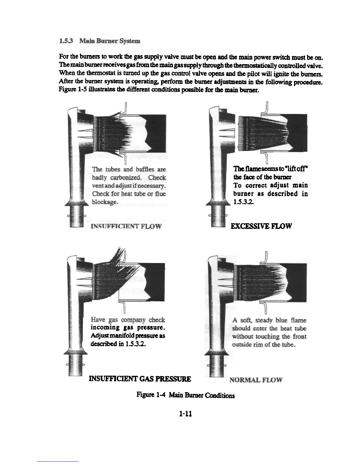 Figure 1-5 illustrates the different oonditions possible for the main burner.
