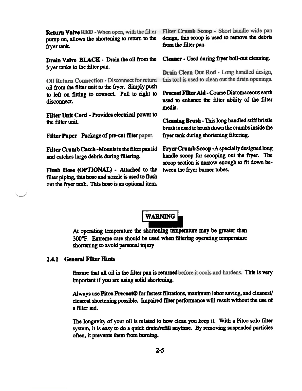 Always use Pitco Precoad for fastest filtrations, maximum labor saving, and cleanest/