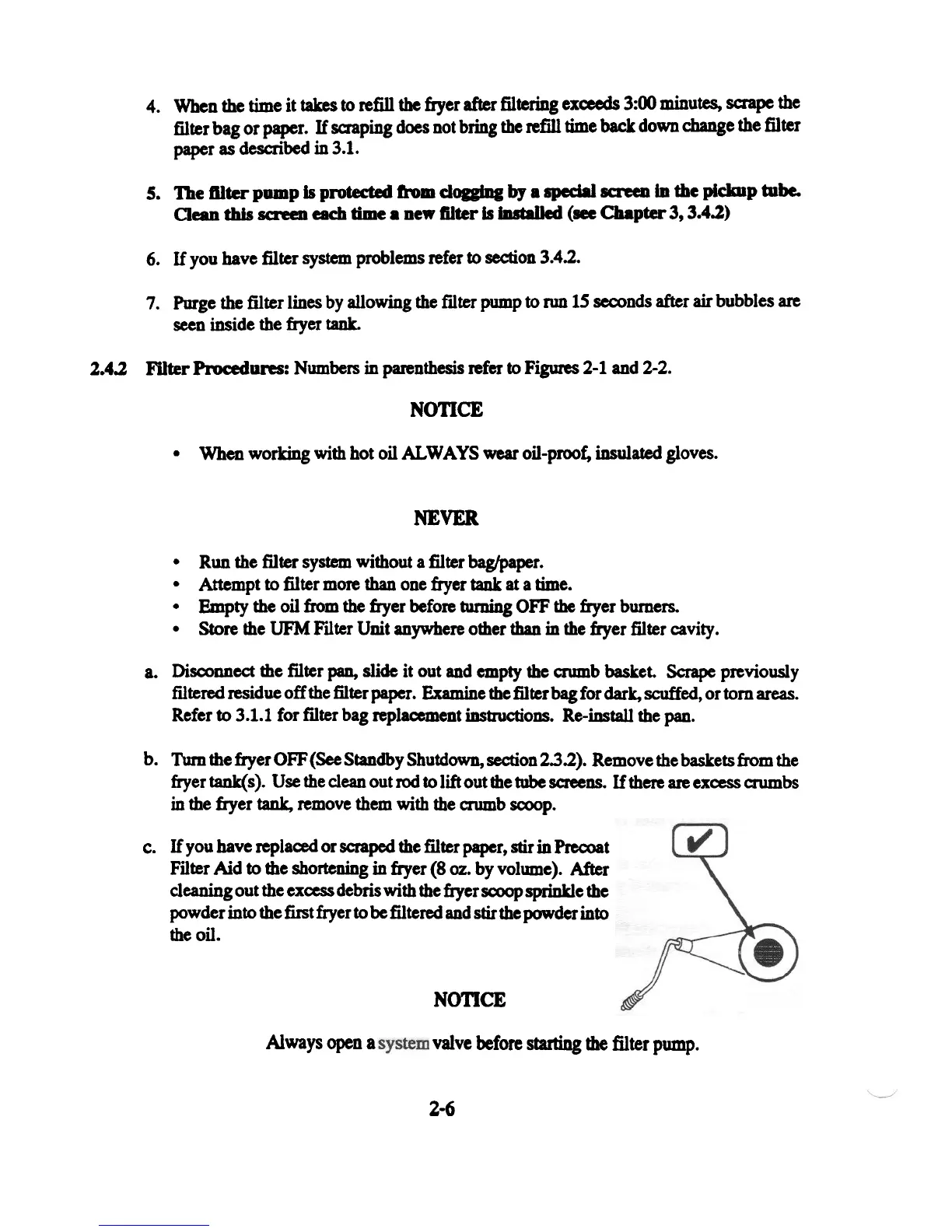 6. If you have filter system problems refer to section 3.4.2.