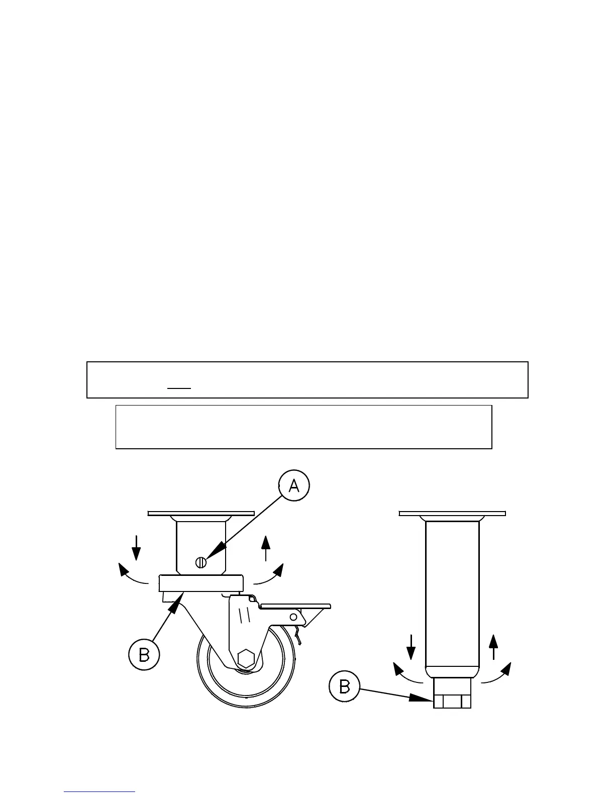 devices (B) with water pump pliers. On casters, loosen 2 screws (A) before leveling, make your