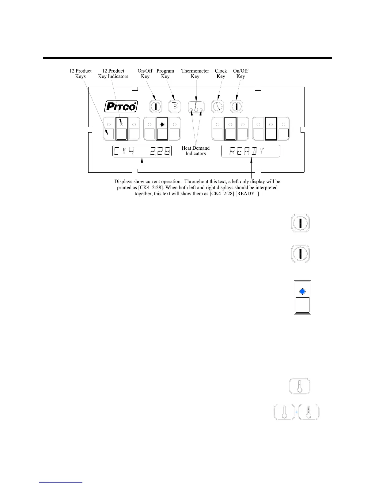 To view the actual vat temperature, press the thermometer key. The display will show