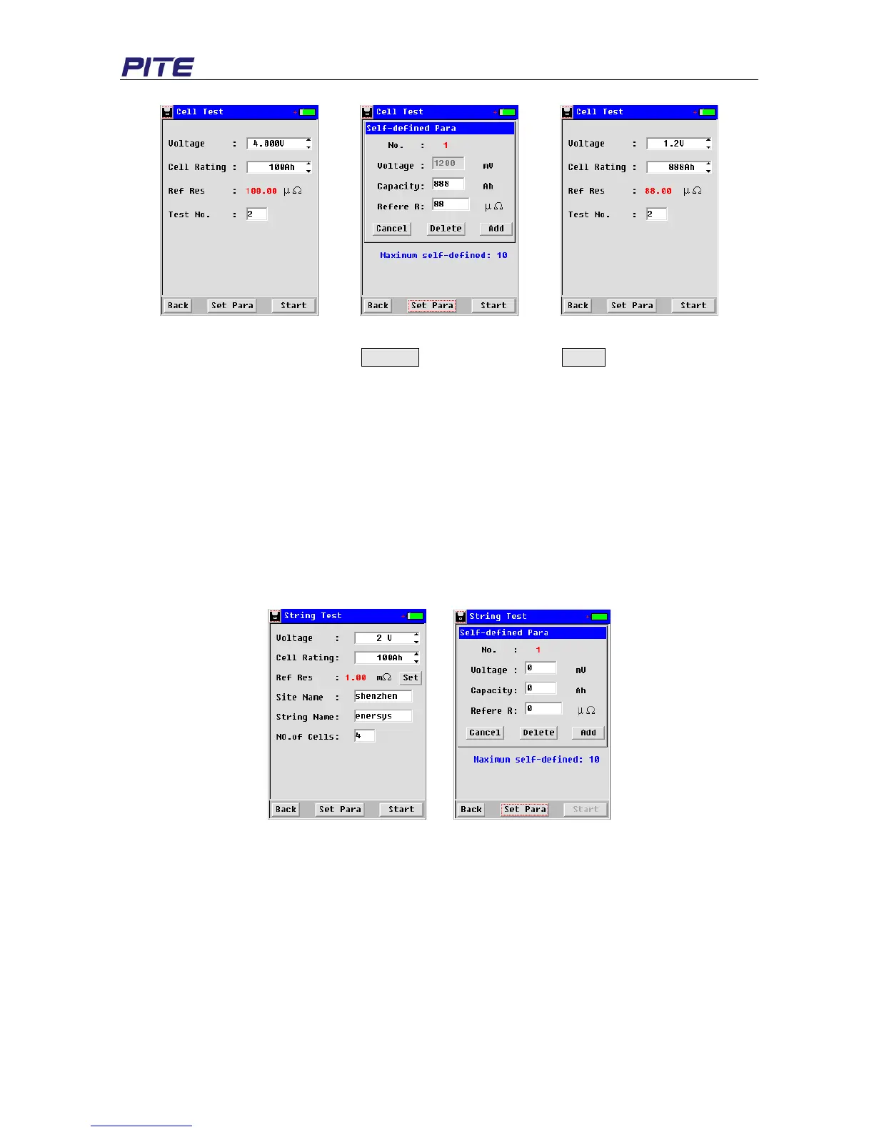 battery rating in the same way like single cell measurement. Setting of user-defined data is also in the