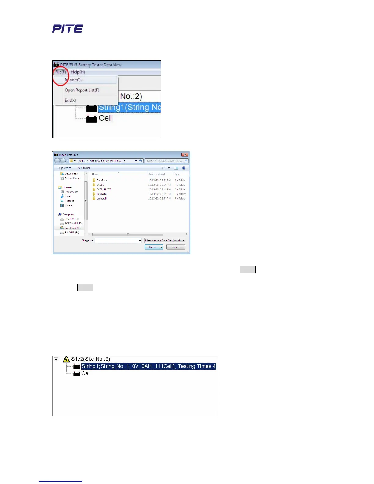 predefined in PITE 3915 main unit. All testing data will be grouped in different sites with string and cell