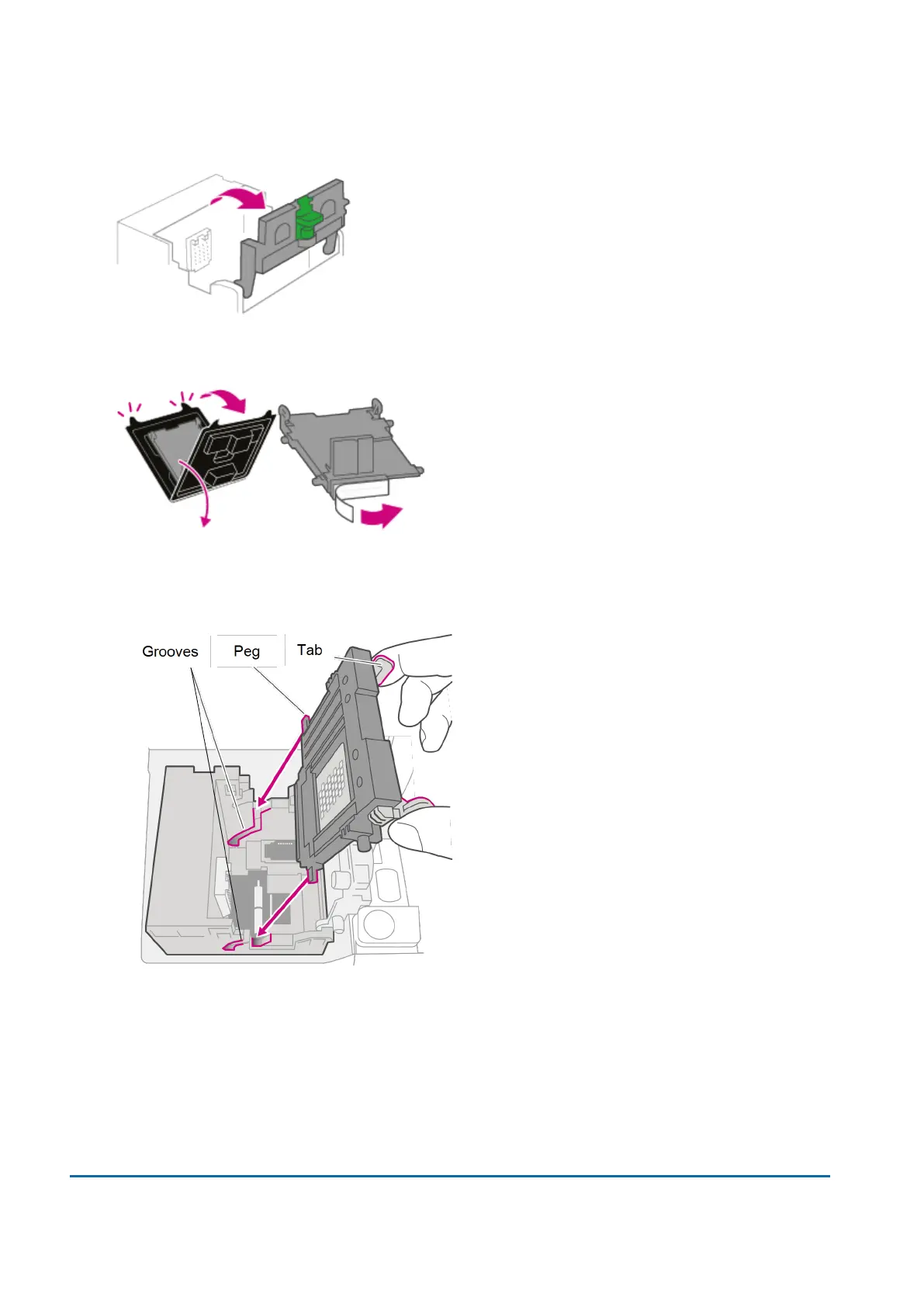 5. Squeeze the tabs and slide the printhead pegs into the lower set of grooves.