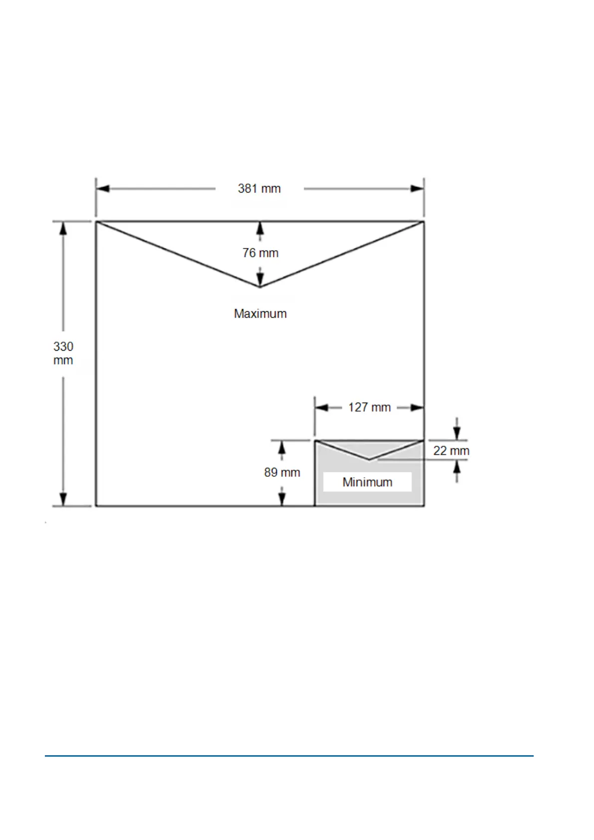 For a proper seal, the envelope’s minimum flap angle must meet the following criteria: