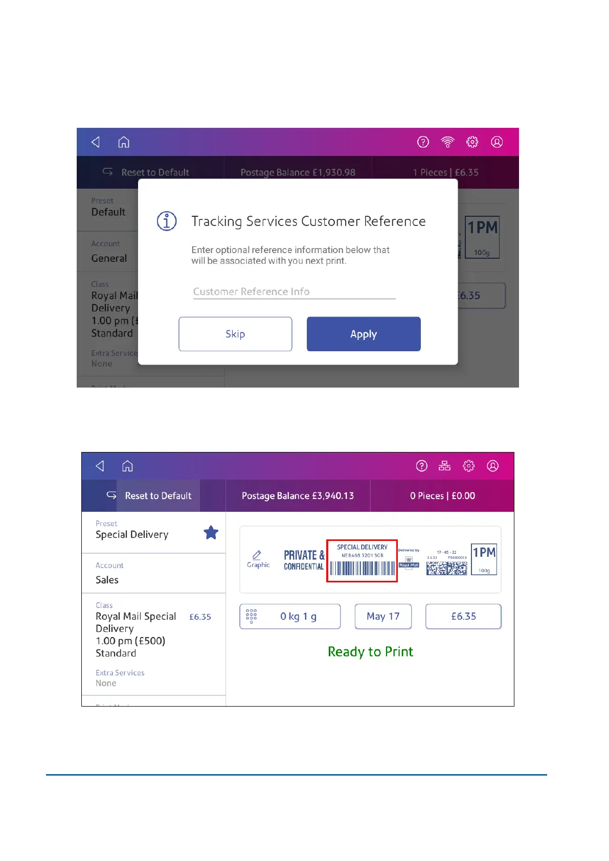 9. You can enter a reference of the mailpiece, if desired. For example, you can add a recipients