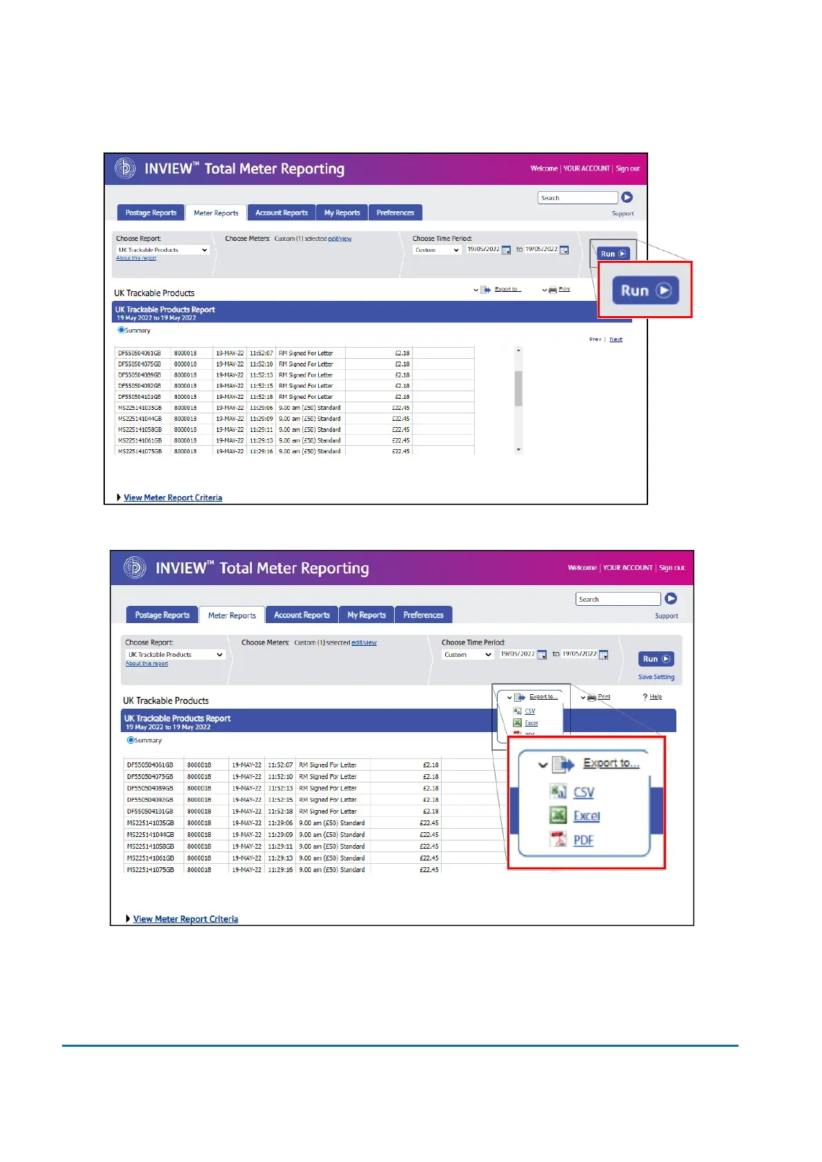 8. To export the report, click Export to and click CSV, Excel or PDF.