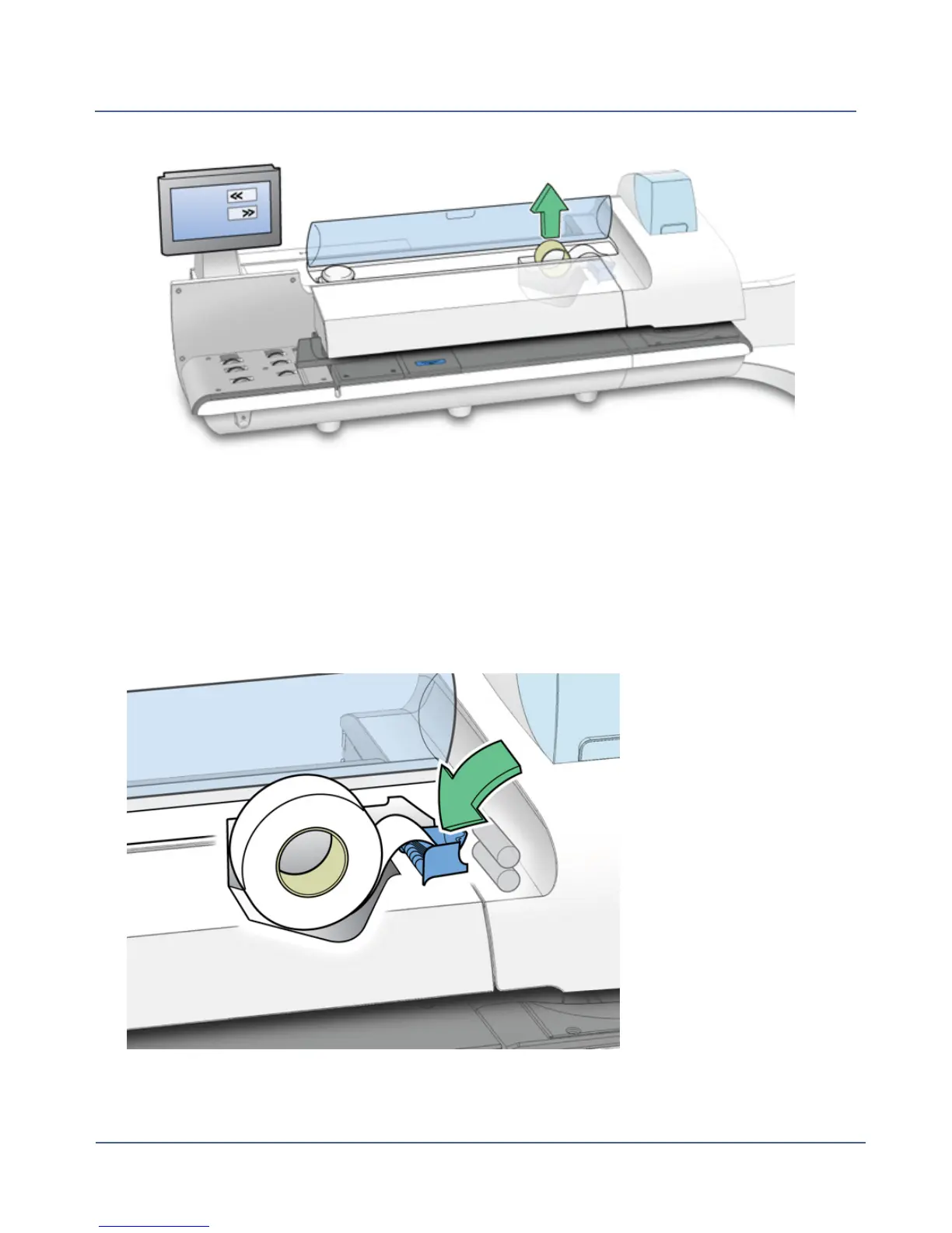 8. Drop the new roll tape into the well. Make sure the leading tape edge comes up from