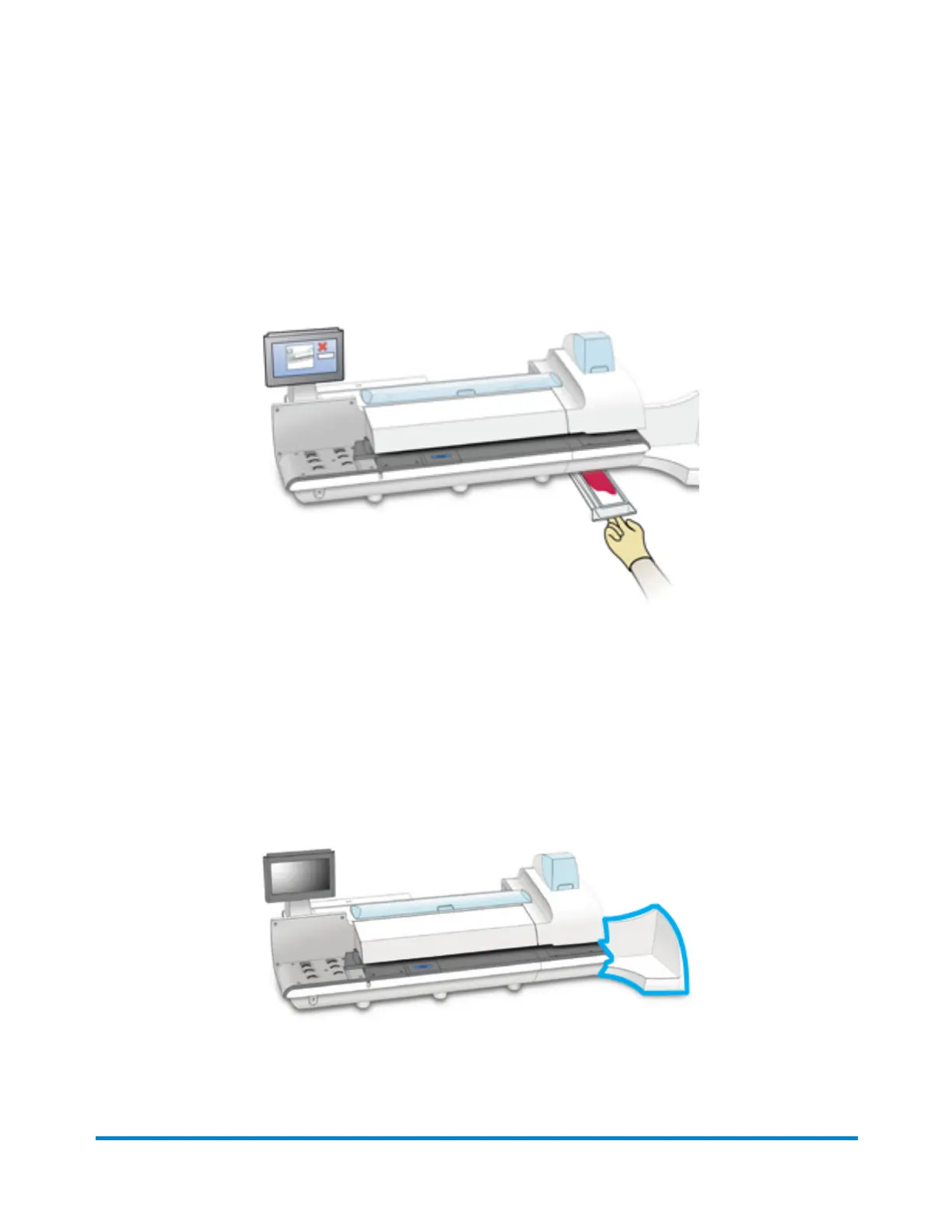 Ink is deposited in the waste ink tray during the print head cleaning process. The system will alert you