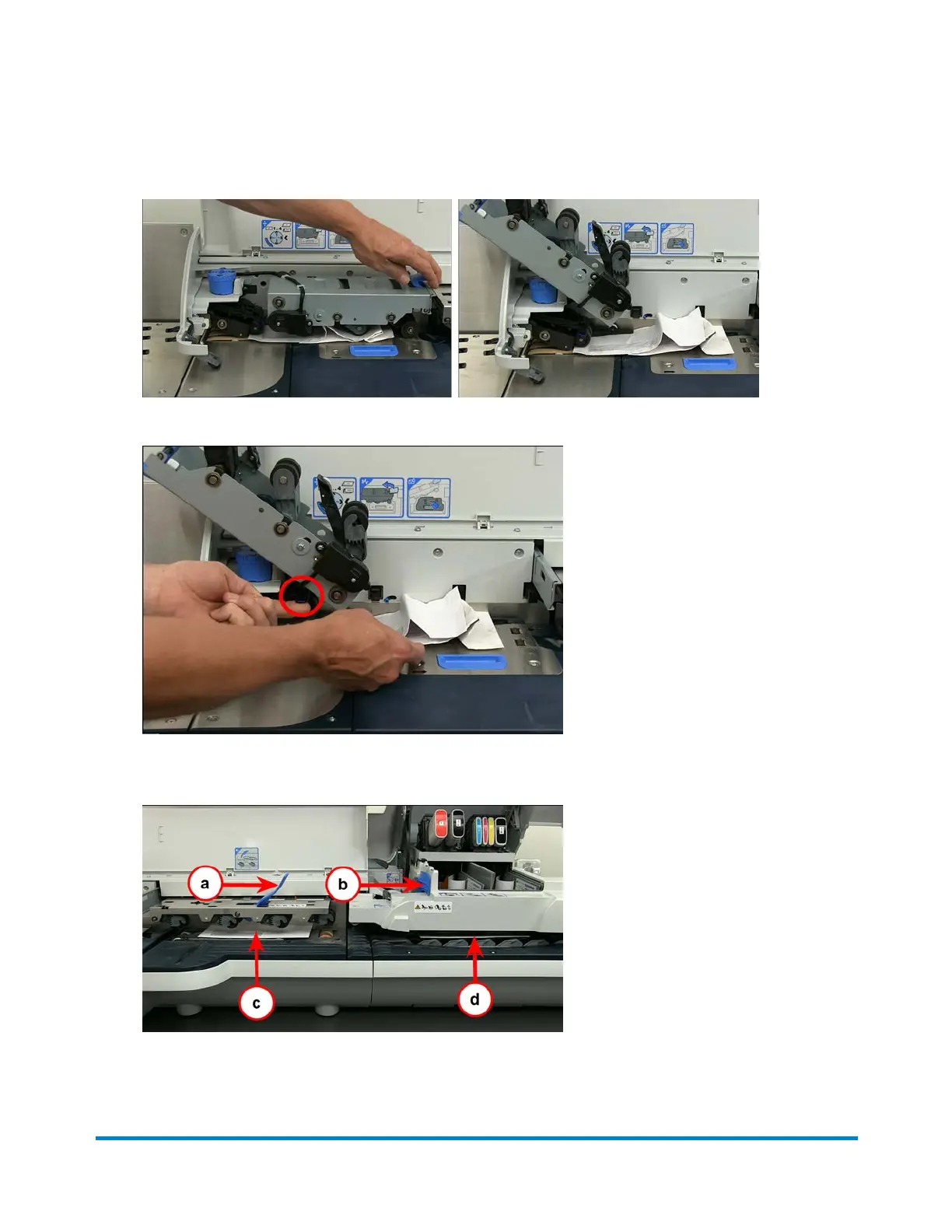 remove any envelopes from the (c) W-O-W and (d) printer decks.
