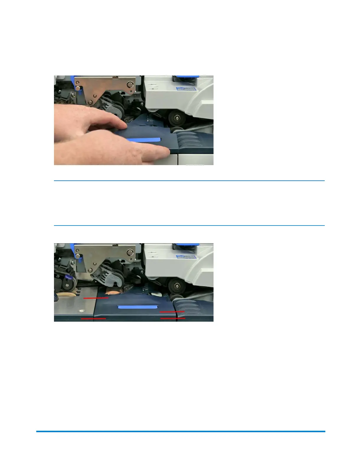 Make sure that the moistener pad assembly is perfectly level with the feed deck and that the