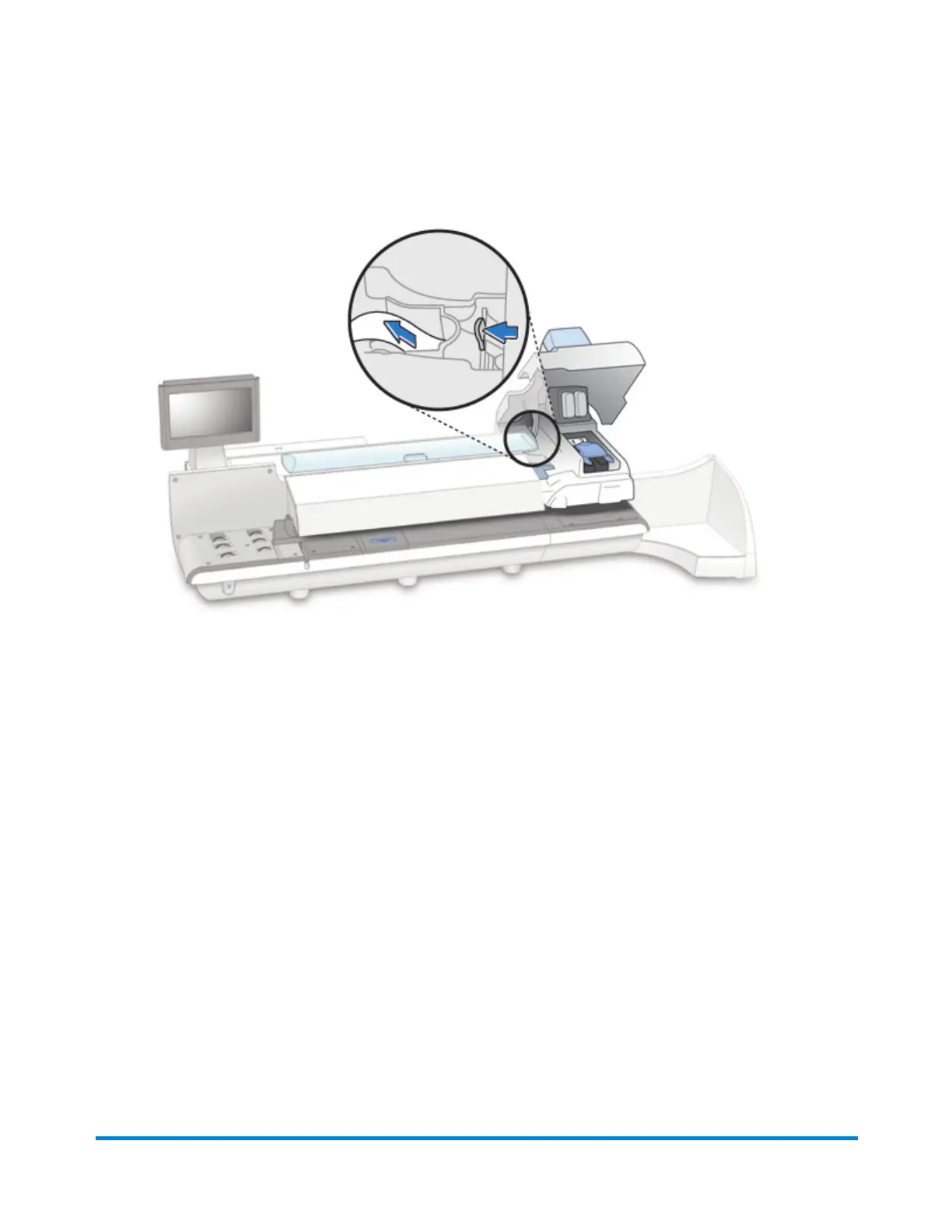 2. Press the blue tape lever to the left and remove the stopped tape.