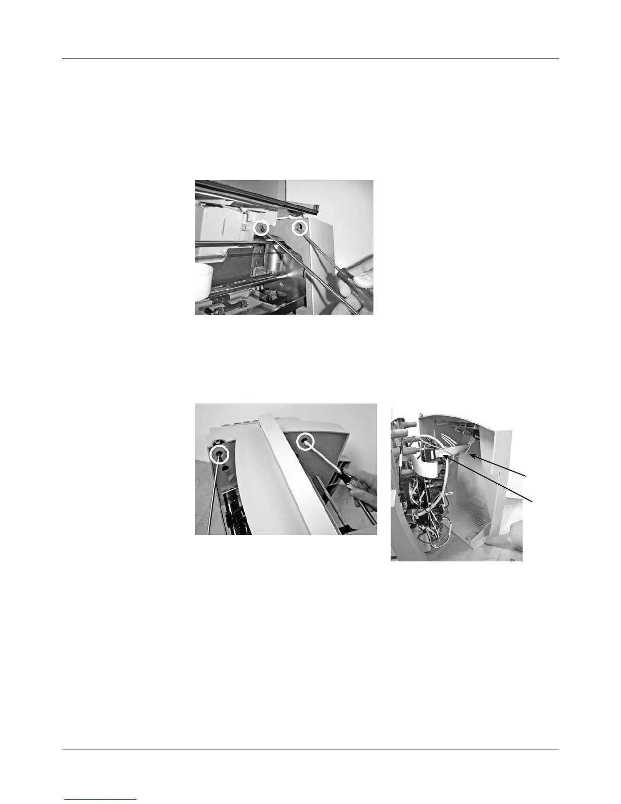 3. Unfasten two phillips screws from operator side cover (see left photo be-