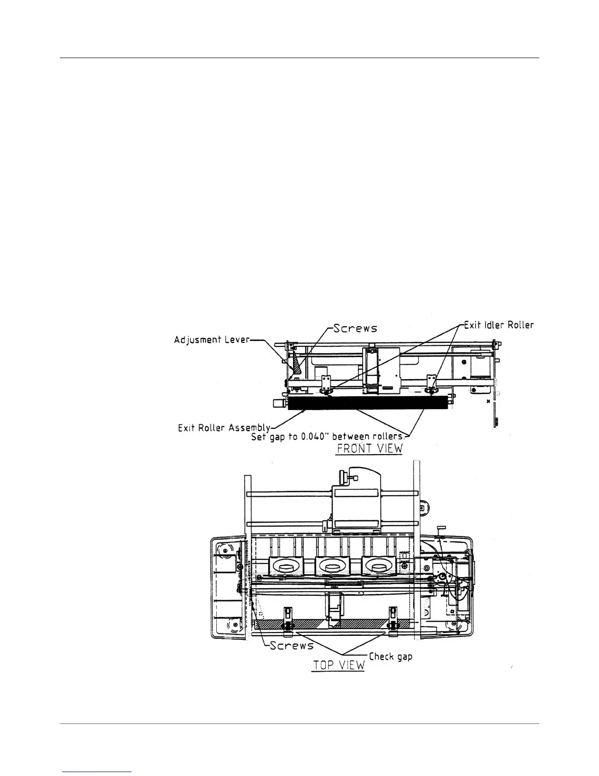 exit idler rollers. A 0.040” feeler gauge must pass freely between both