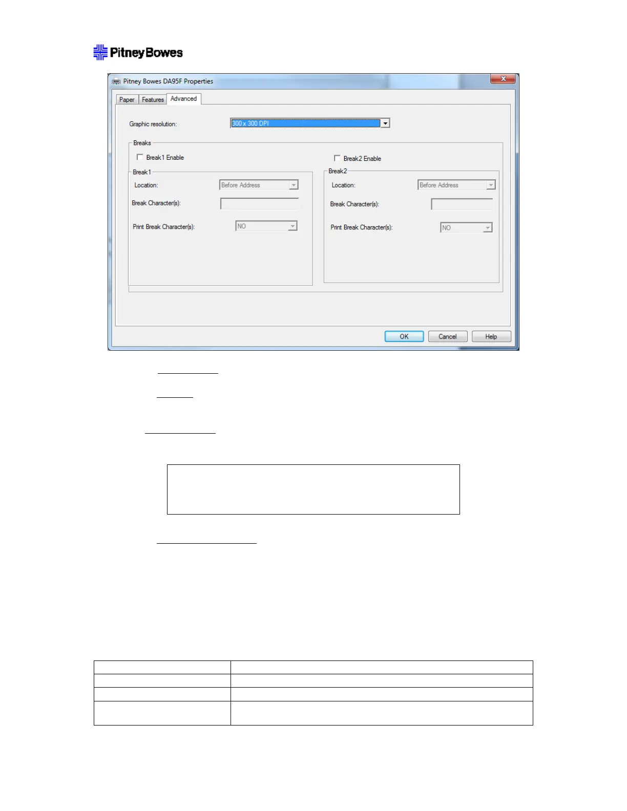 . Enter exact break string that will appear as characters in print stream.