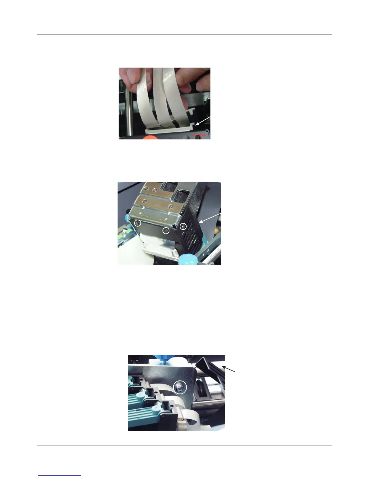 7. Remove three screws (small allen size) for print head metal cover. Slide