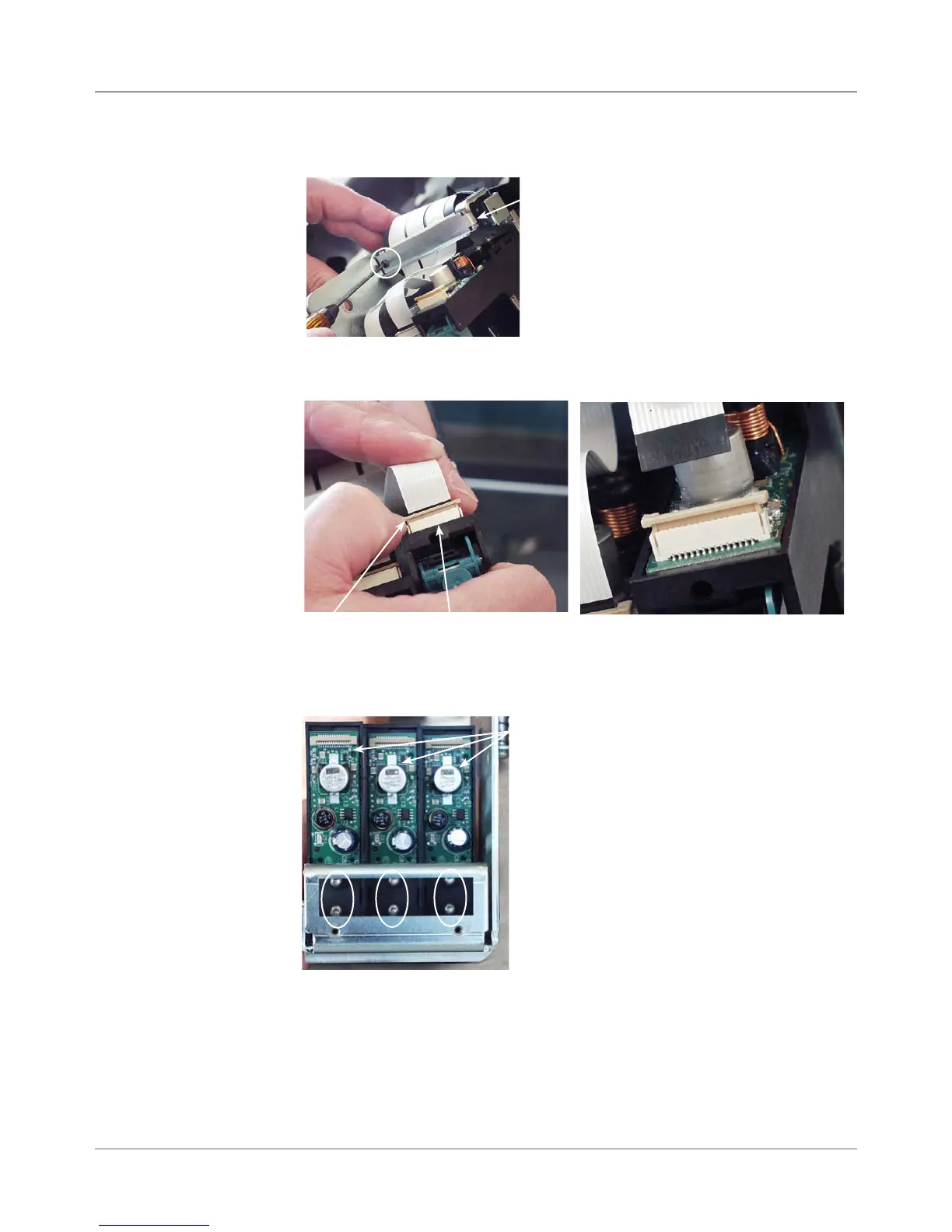 9. Remove metal clamp (one screw) holding all three print head cables.