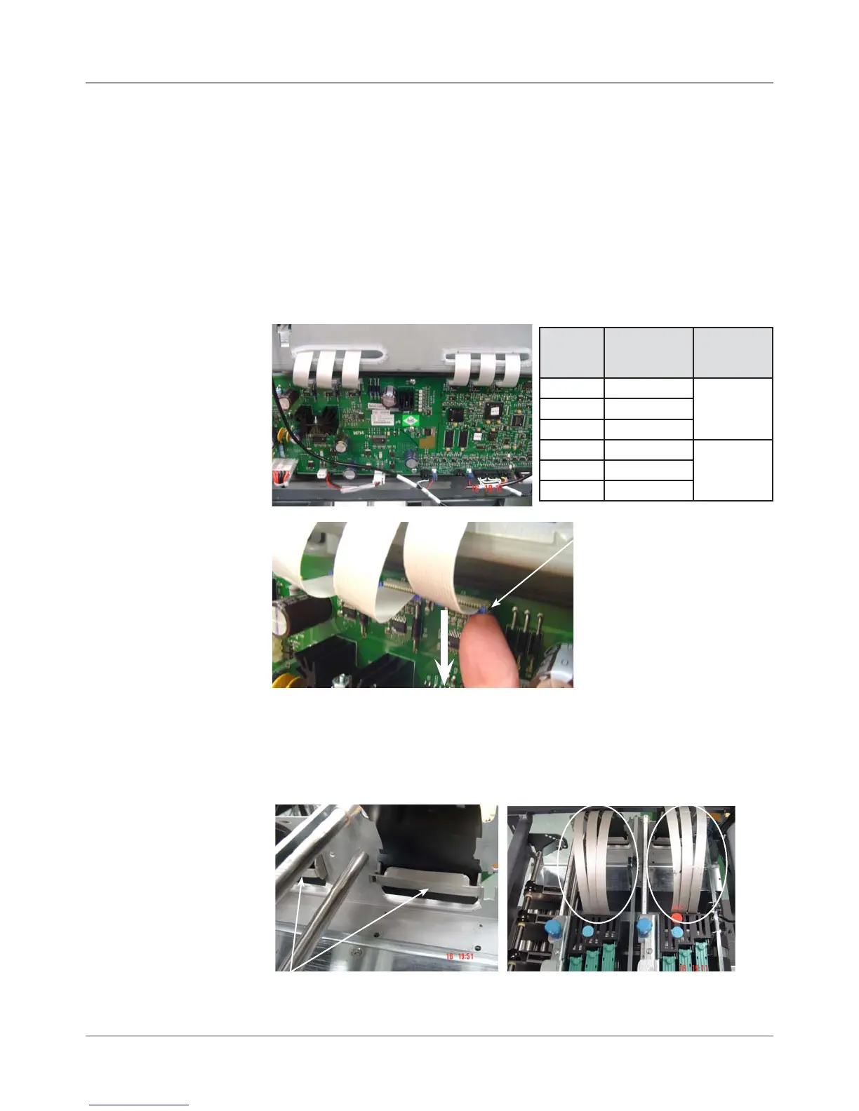 21. Attach print head cables to main board connectors (see figures below).