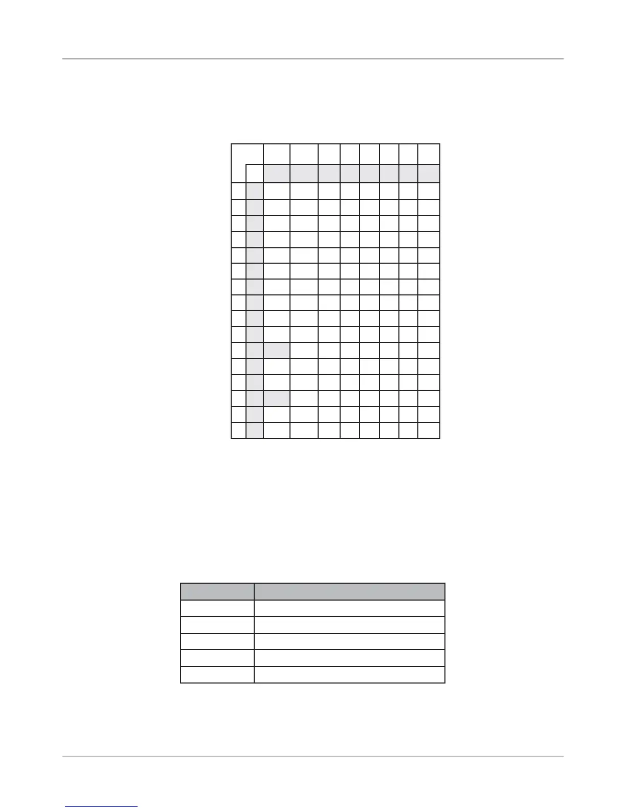 chart, then look toward the top of the chart (MSB) and locate the HEX num-