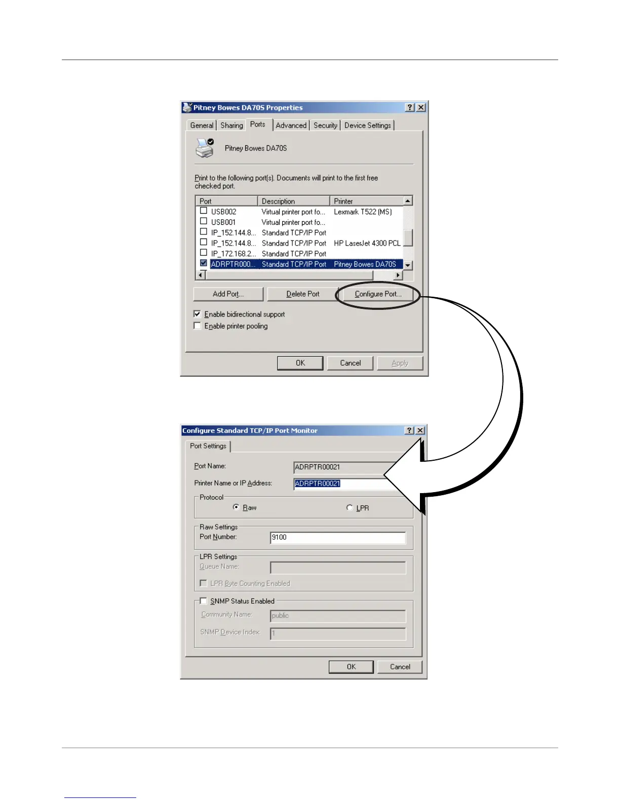 Figure B-1 Typical Printer Port Settings When Using