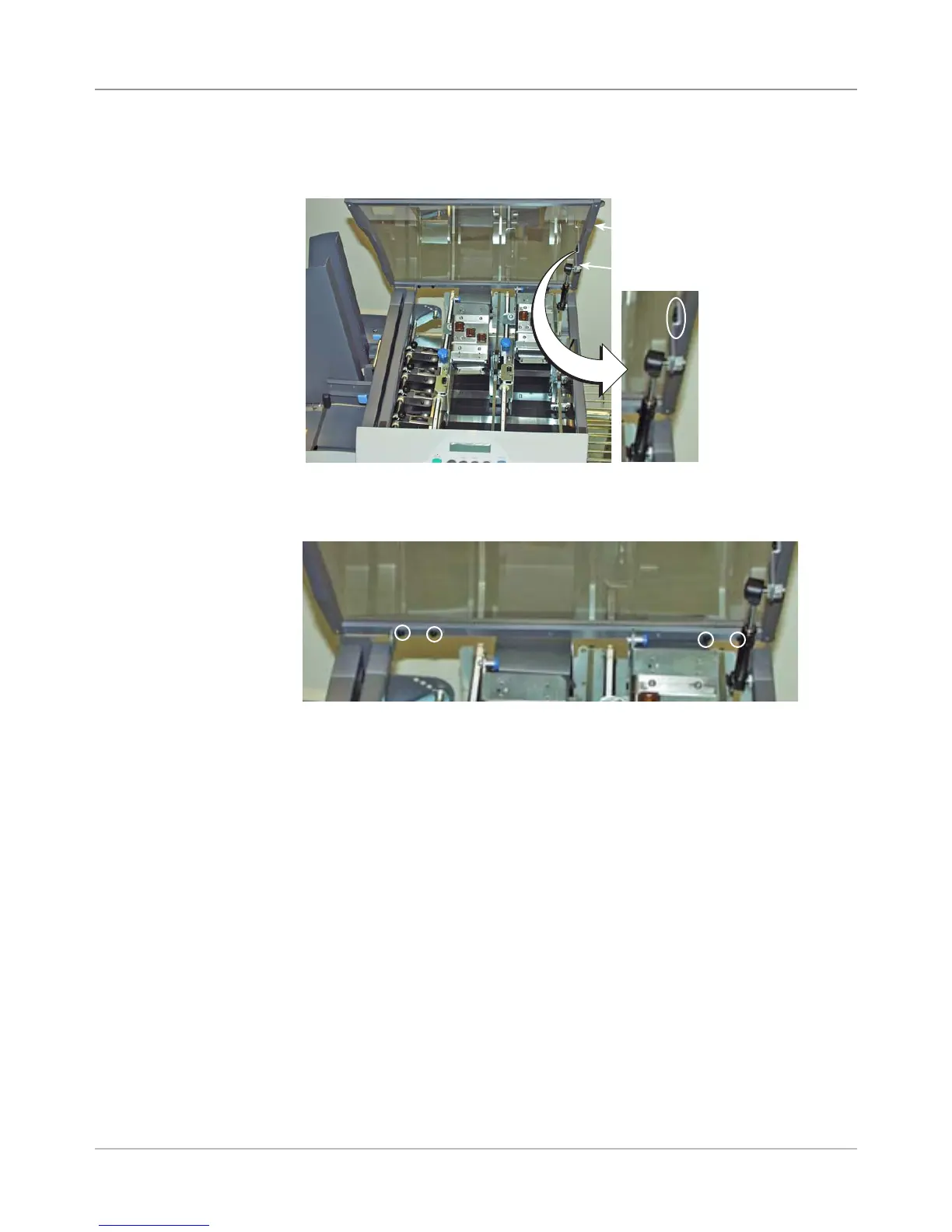 1. Lift top plexiglass cover up to access shock support arm. Unfasten two