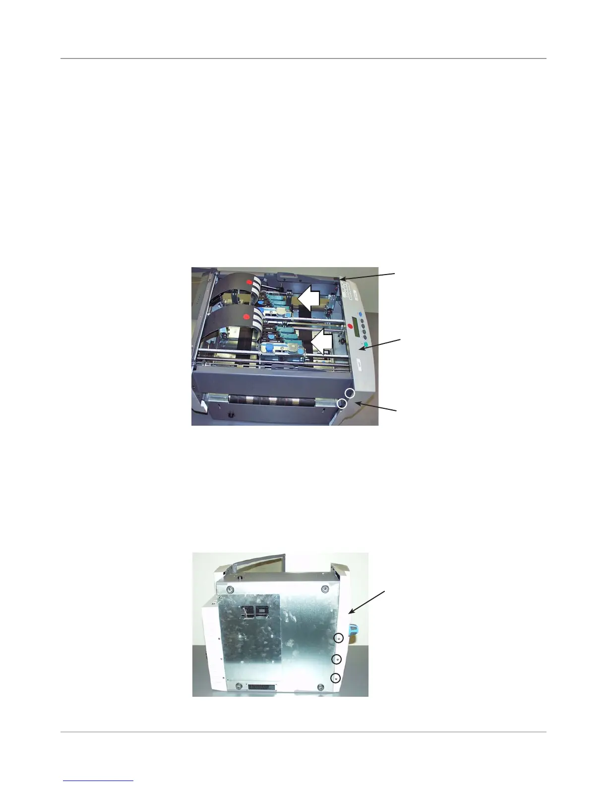 5. From the feeder side of the printer, unfasten the two screws holding the