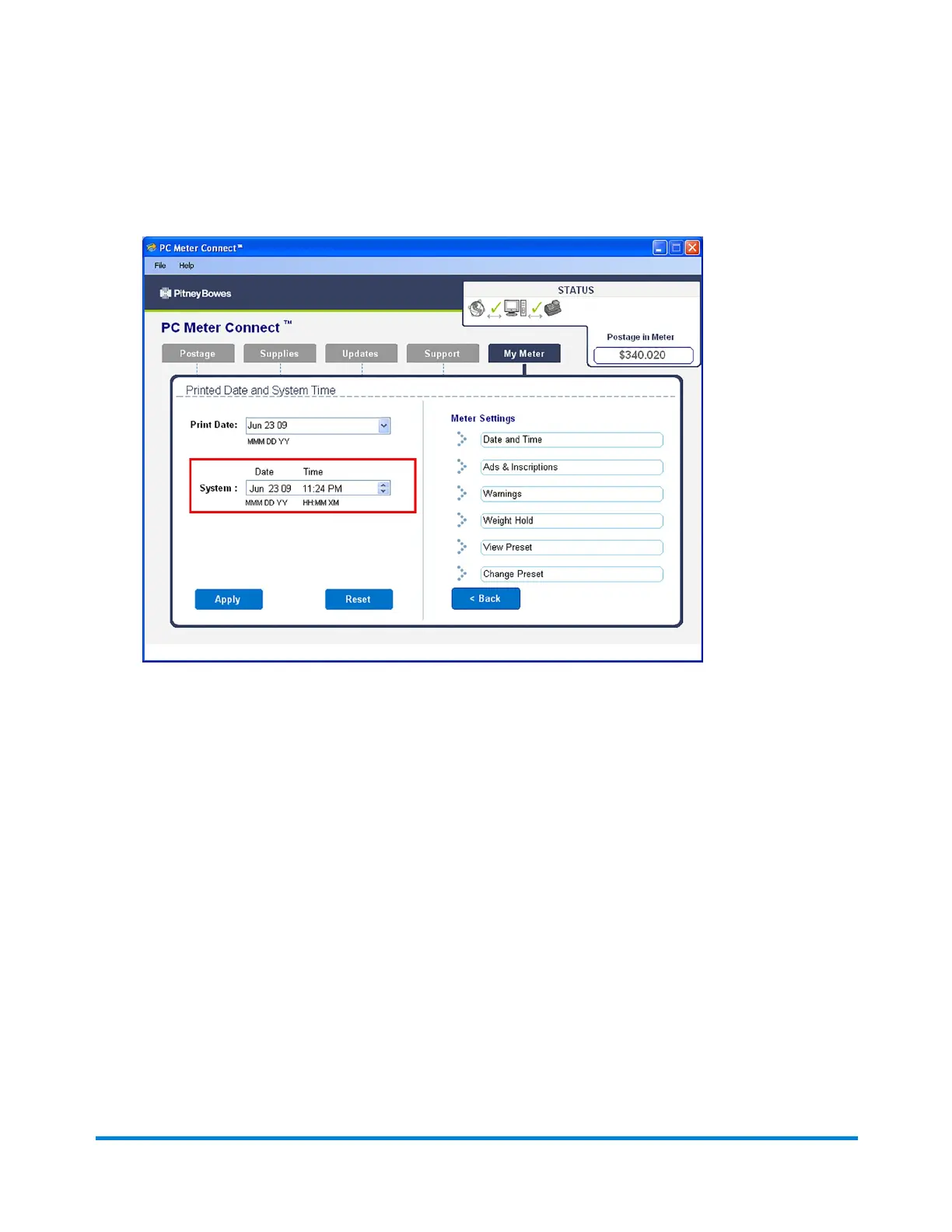5. Click Apply and a confirmation screen displays the new time. Click OK.