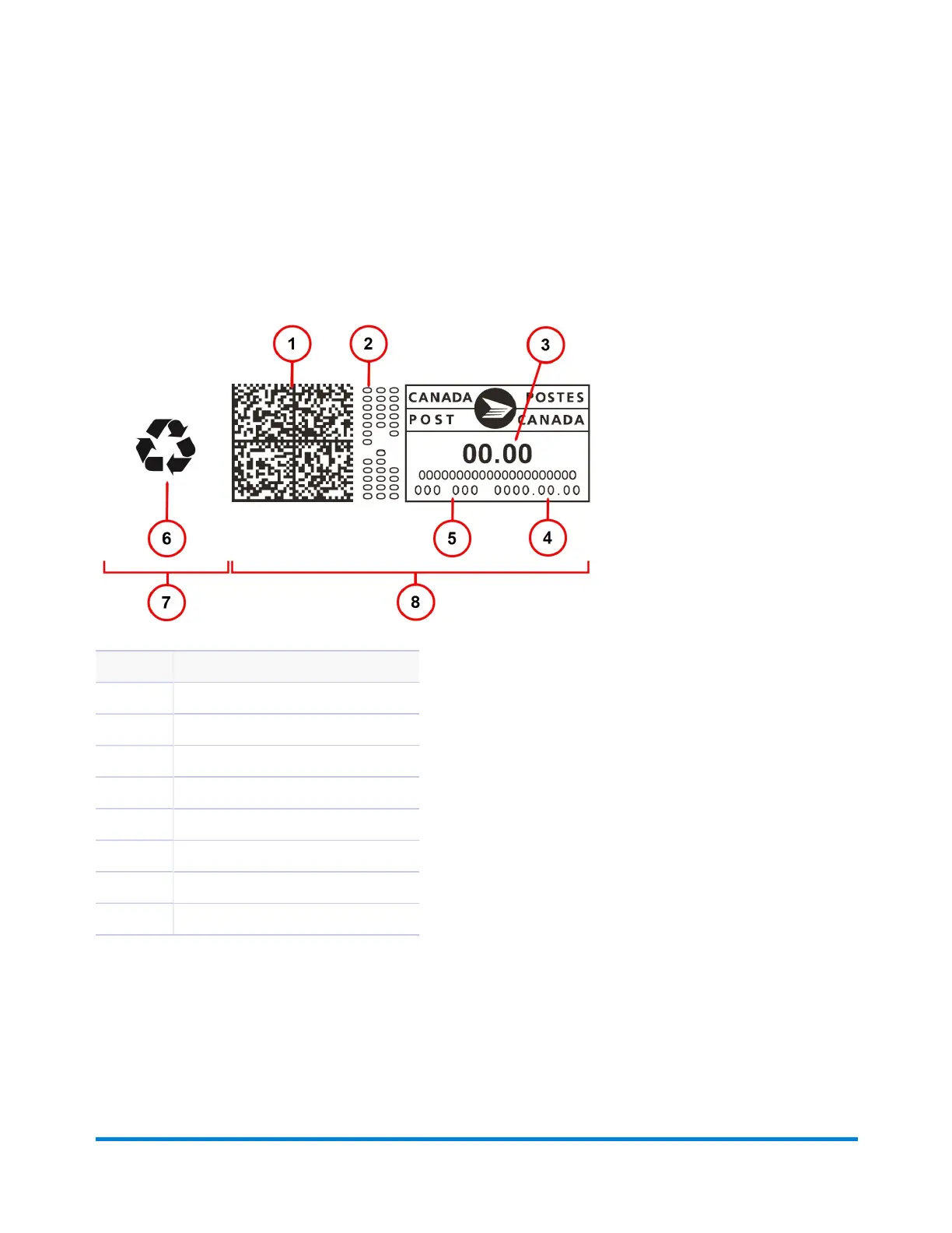 The location of the meter stamp items on a mail piece or tape strip are shown here.