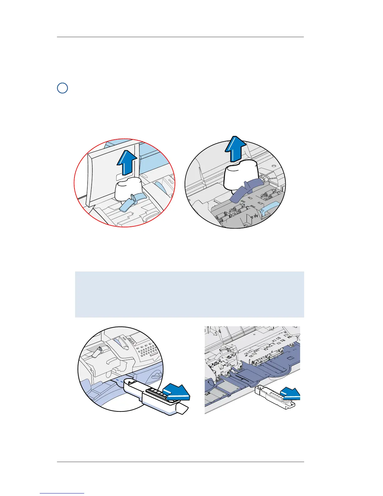 1. Open the feeder access cover (DM400c) or feeder/WOW cover