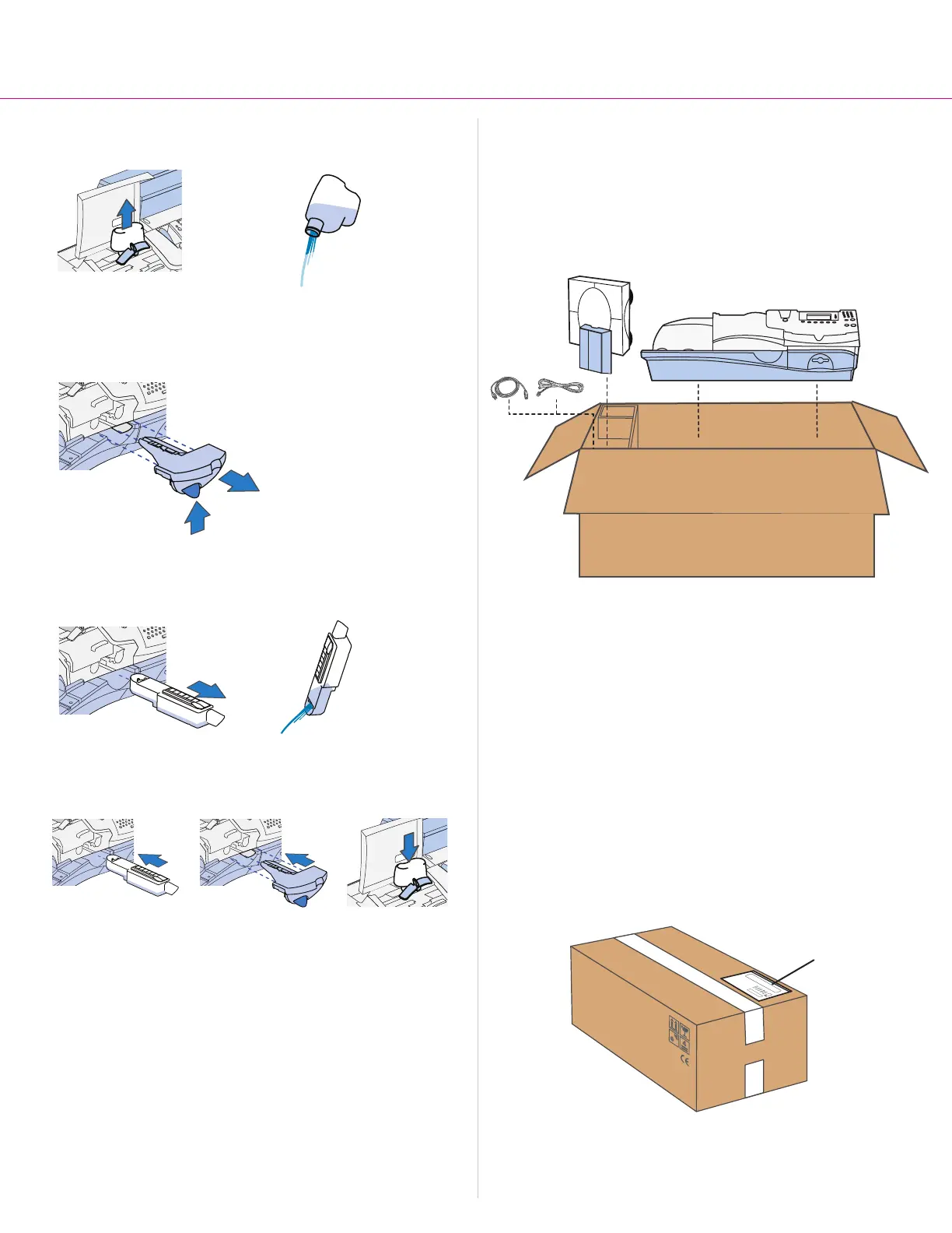H. Reinsert the moistener tank, stripper blade/brush