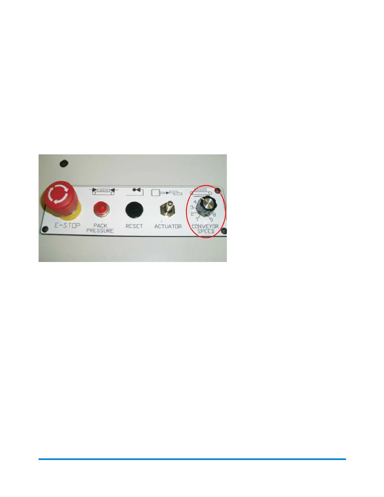 The conveyor speed dial controls the speed of the stacker conveyor belt. Adjust the conveyor speed by