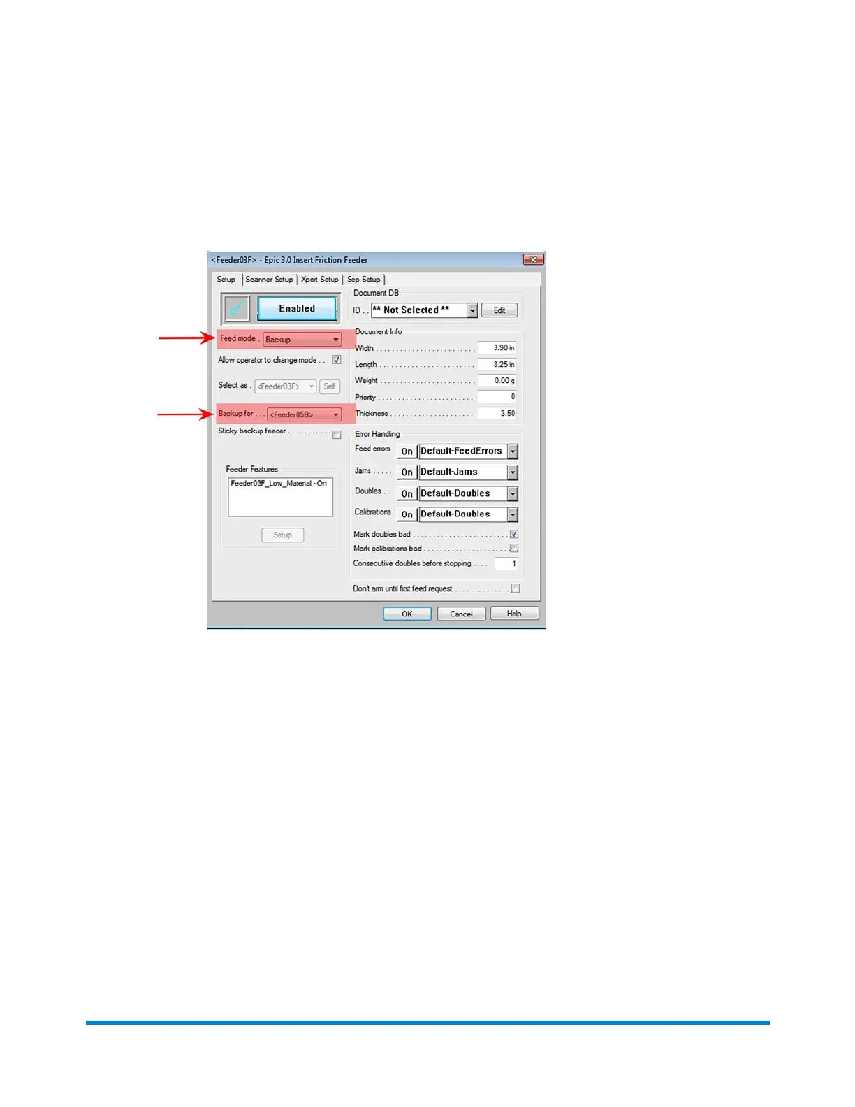 b. In the Backup for field, select the feeder to use as a backup from the drop-down list.