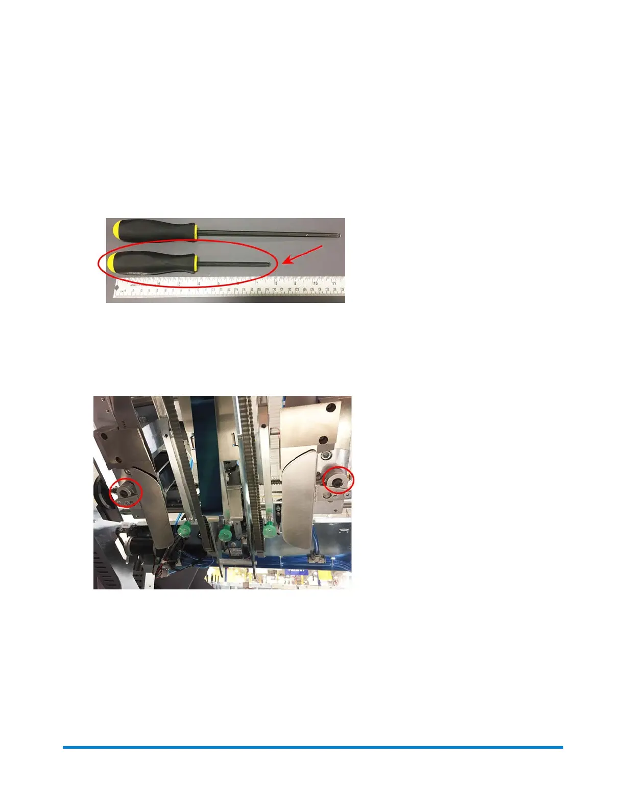 1. Loosen the short screw using the short setup tool.