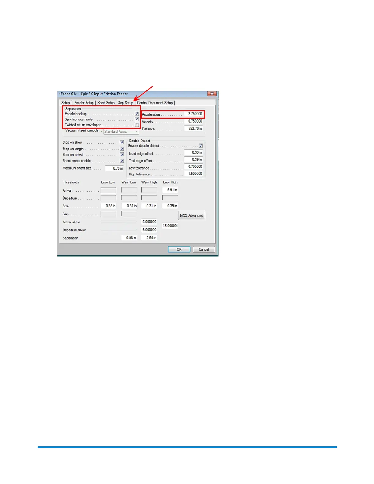 5. Selecttheappropriateseparatorsetupoptionsforthefrictionfeeders: