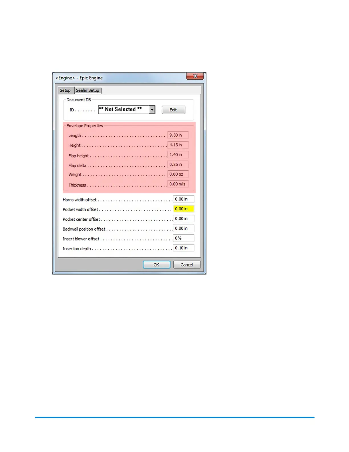 3. TheEnginescreenopens.Youcandefineenvelopepropertiesforyourjobhere.
