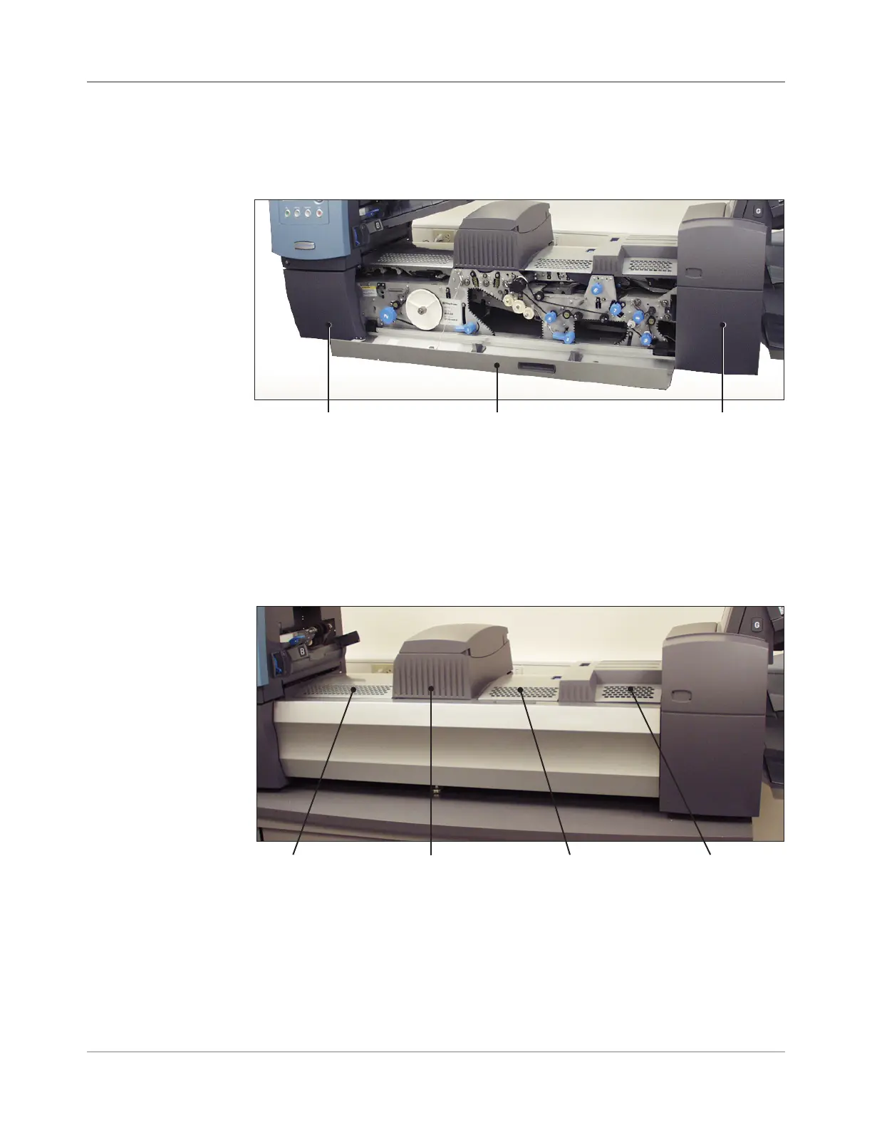 Three covers on the front side of the system, as shown in the figure below,