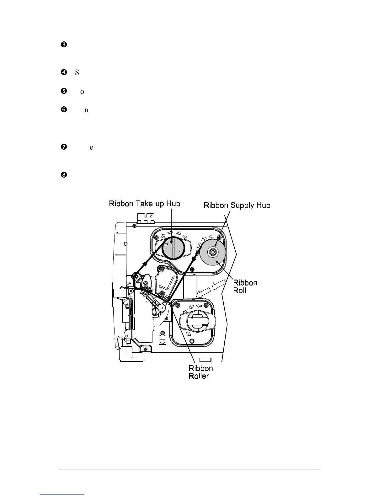 Route the ribbon under the Ribbon Roller then out the front of the printer.