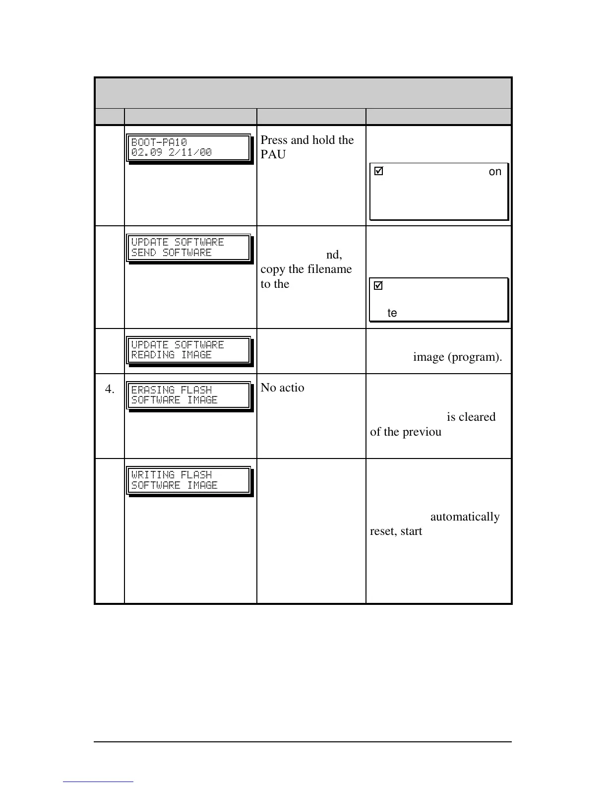 Step Displayed Message Operator Action Comment(s)