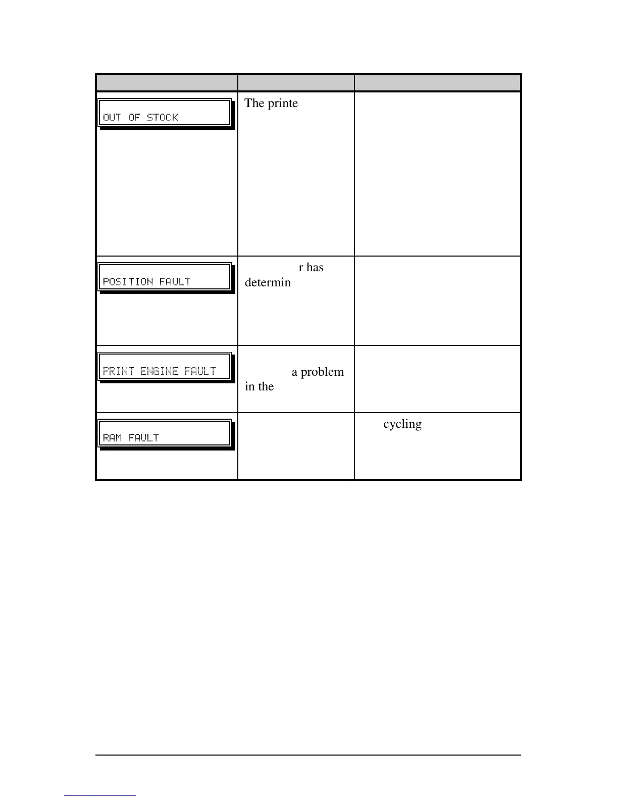 Fault Messages (continued):