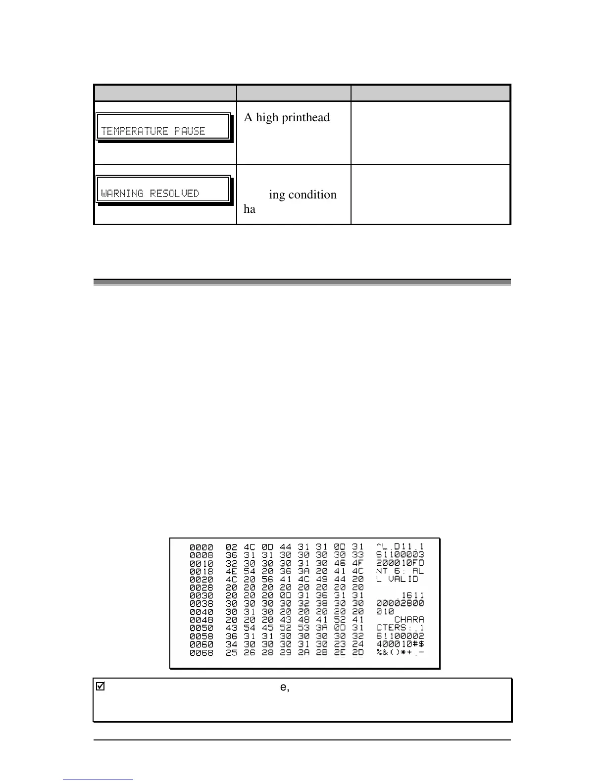 The figure below is a sample Hex Dump Label. After sending a label format to