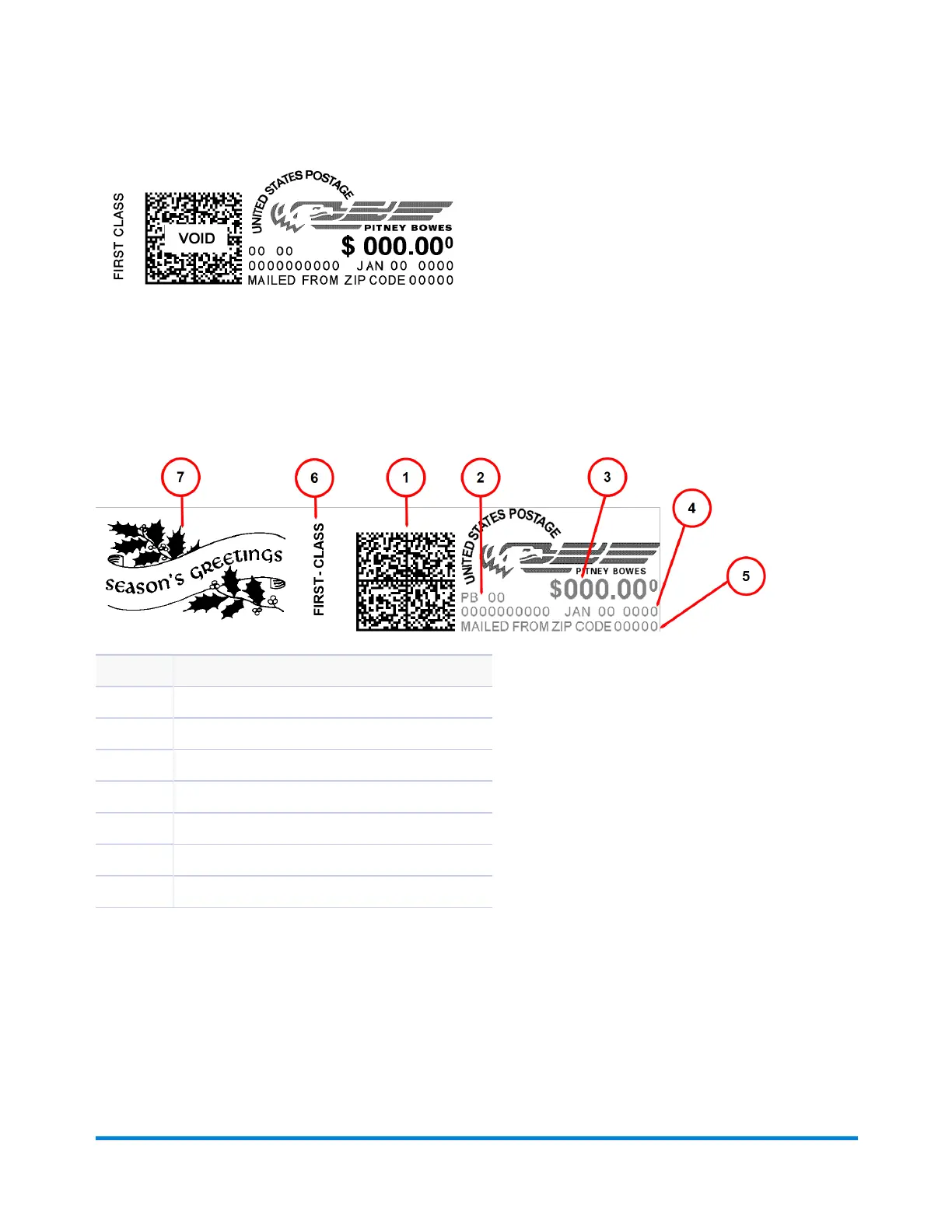 Thelocationofthemeterstampitemsonamailpieceortapestripareshownhere.