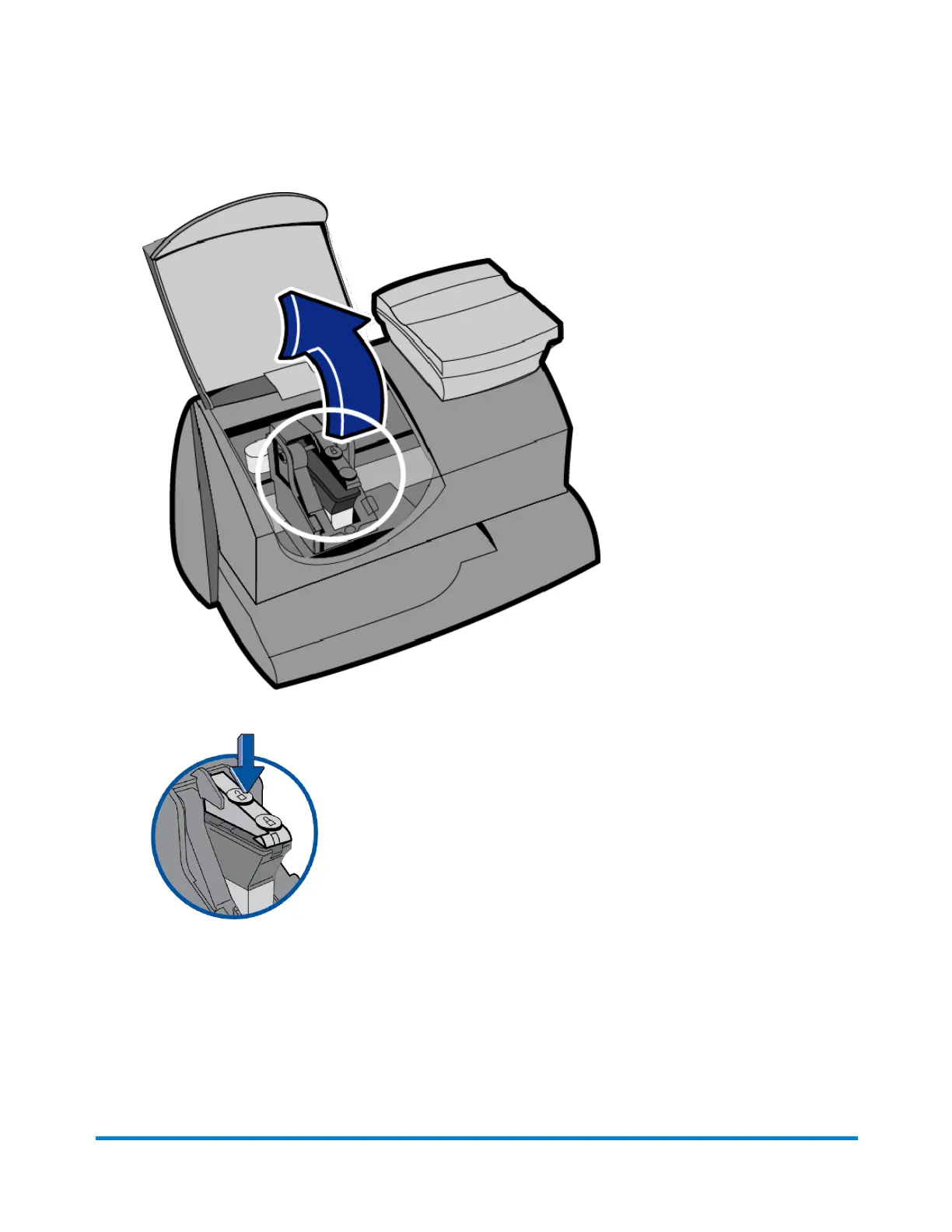 e. Presstheunlockicontoopentheinkcartridgelatchasshownintheimage.