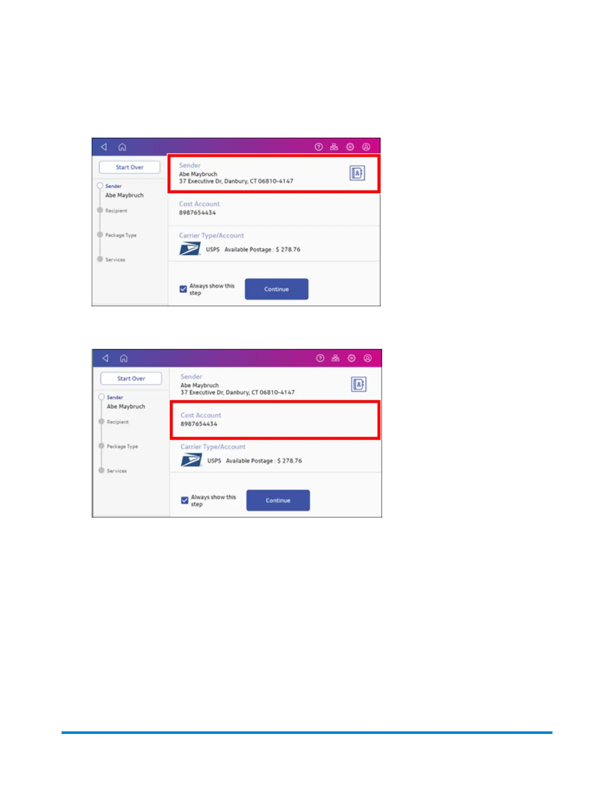 4. If cost accounts are enabled, you must select an account. If an account is already present, verify