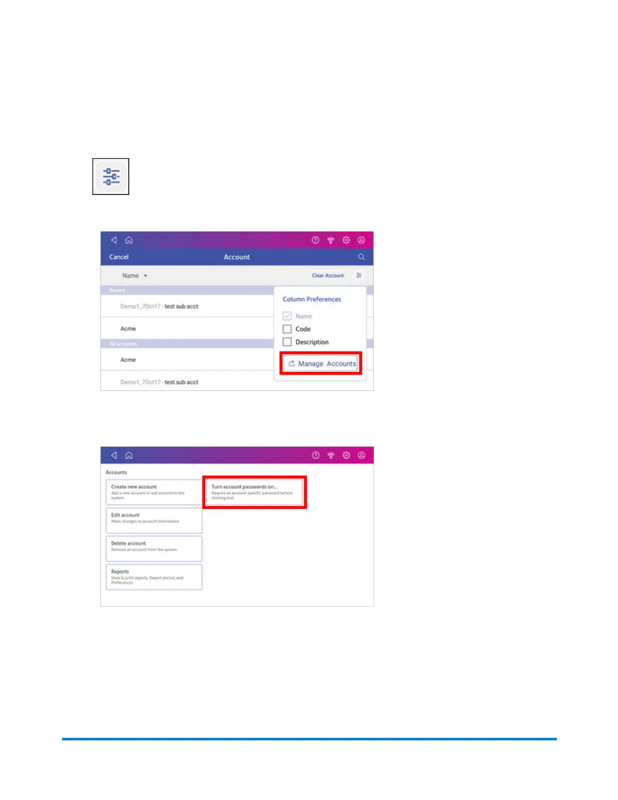5. The Manage Accounts screen opens.